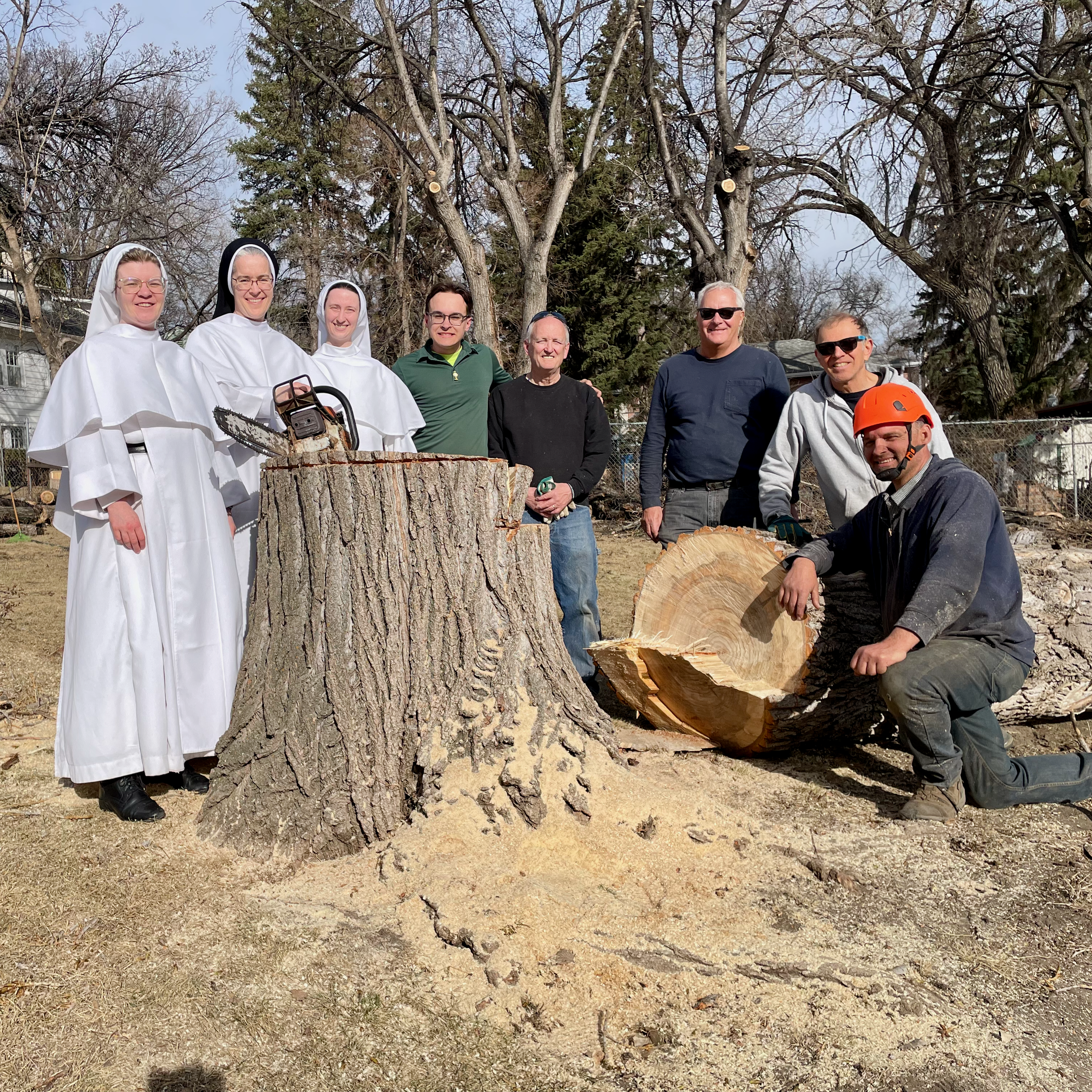 Trent and Joseph Schweitzer with the Knights of Columbus helped the St. Mary Sisters clear the land of trees