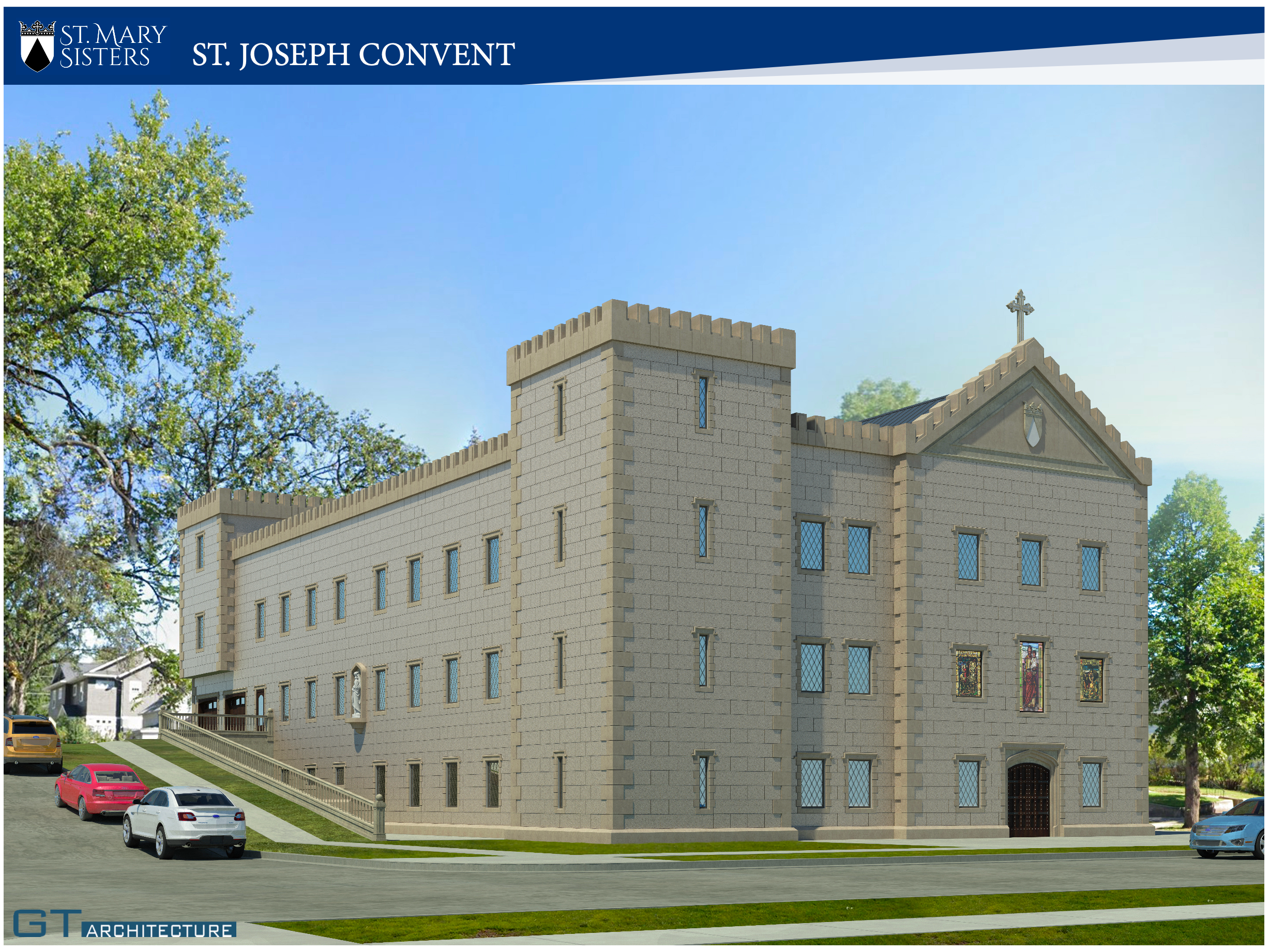 Concrete at its best can resemble the limestone castles and universities of Europe. The St. Mary Sisters are educators and followers of an 800 year-old way of life making it fitting for them to choose their design from antiquity.