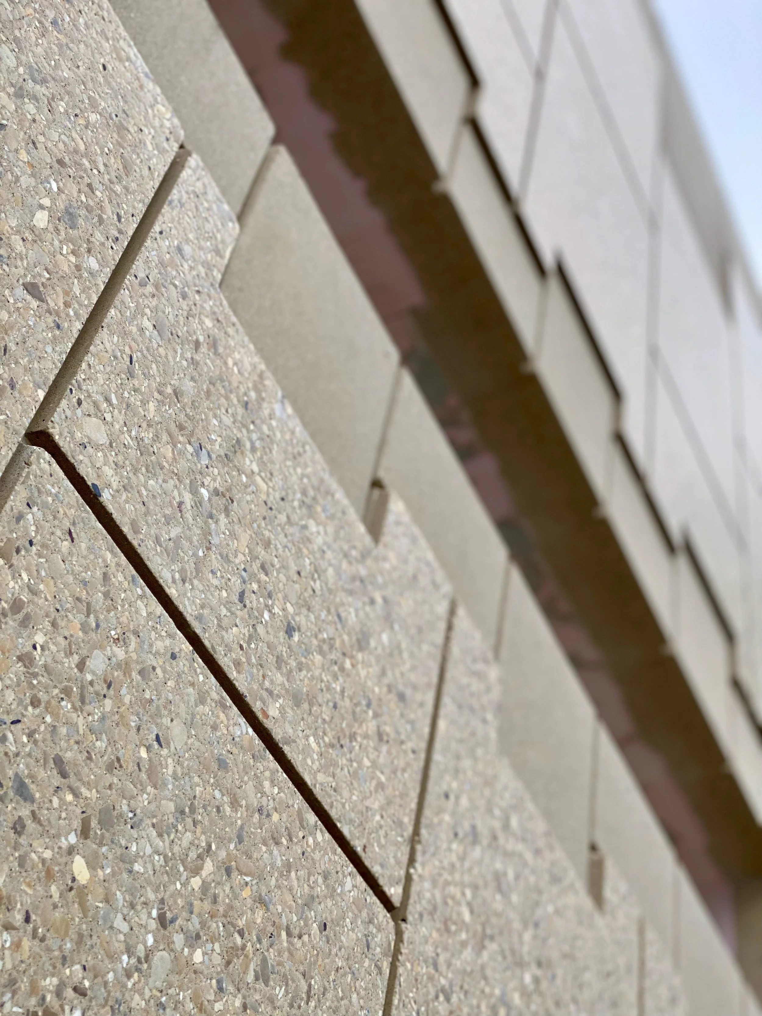 Below is a sample of a precast exterior wall of the St. Joseph Convent. Precast walls are made by pouring concrete into large molds offsite. After all the pieces are made, they are brought in and assembled onsite.