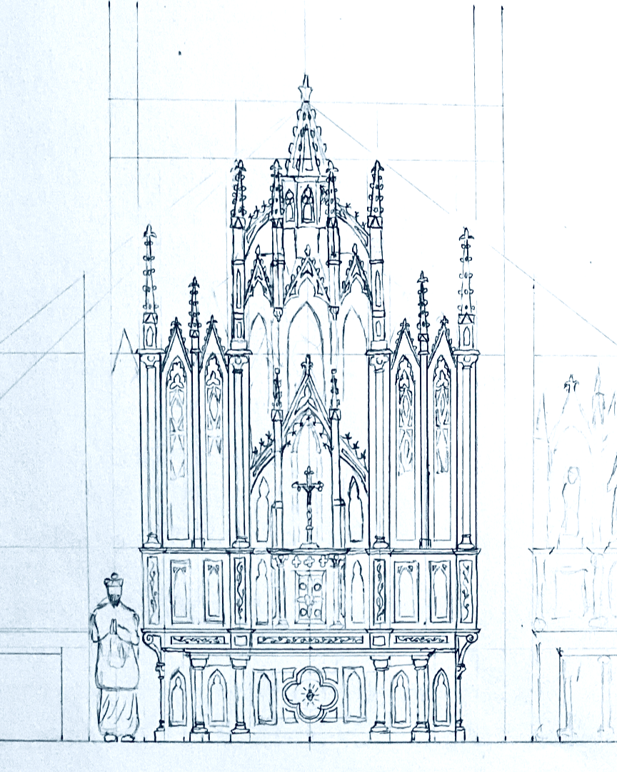 The designing of the main altar has begun. You will see updates periodically. This is the third sketch of what is being considered for the main altar design. Check again, in a week or so for more sketches…